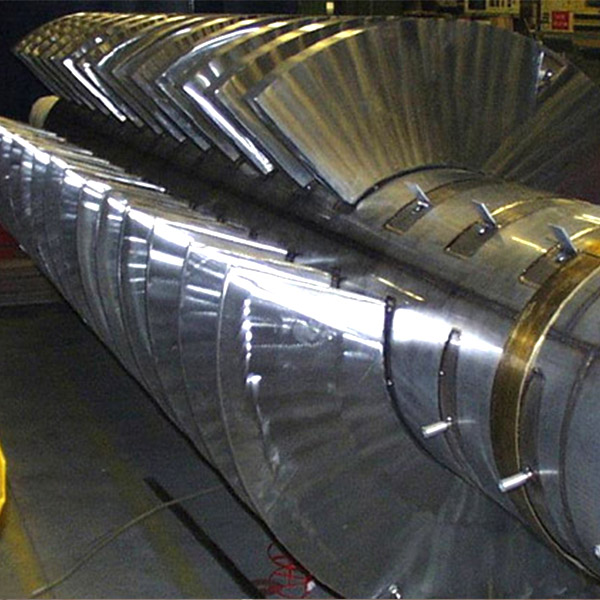 空心軸上密集排列著楔型中空槳葉,熱介質(zhì)經(jīng)空心軸流經(jīng)槳葉。單位有效容積內(nèi)傳熱面積很大,熱介質(zhì)溫度從-40℃到320℃,可以是水蒸汽,也可以是液體型:如熱水、導(dǎo)熱油等。間接傳導(dǎo)加熱,沒有攜帶空氣帶走熱量,熱量均用來加熱物料。熱量損失僅為通過器體保溫層向環(huán)境的散熱。楔型 槳葉傳熱面具有自清潔功能。物料顆粒與楔型面的相對(duì)運(yùn)動(dòng)產(chǎn)生洗刷作用,能夠洗刷掉楔型面上附著物料,使運(yùn)轉(zhuǎn)中一直保持著清潔的傳熱面。槳葉干燥機(jī)的殼體為W型,殼體內(nèi)一般安排二到四根空心攪拌軸。殼體有密封端蓋與上蓋,防止物料粉塵外泄及收集物料溶劑蒸汽。出料口處設(shè)置一擋扳,保證料位高度,使傳熱面被物料覆蓋而充分發(fā)揮作用。熱介質(zhì)通過旋轉(zhuǎn)接頭,流經(jīng)殼體夾套及空心攪拌軸,空心攪拌軸依據(jù)熱介質(zhì)的類型而具有不同的內(nèi)部結(jié)構(gòu),以保證最佳的傳熱效果。
