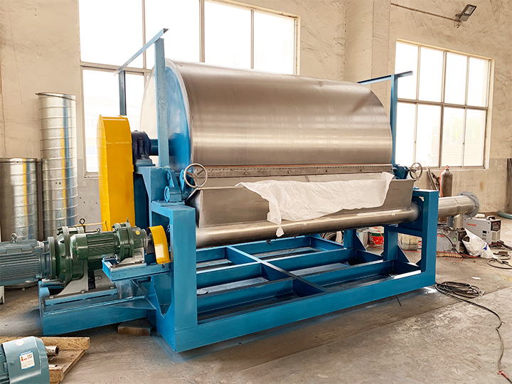 ◎啟動電機,主滾筒動運轉(zhuǎn)平穩(wěn),溫度升高后加入物料后調(diào)整電機轉(zhuǎn)速及物料在滾筒上薄膜均勻程度來控制物料終含水量。