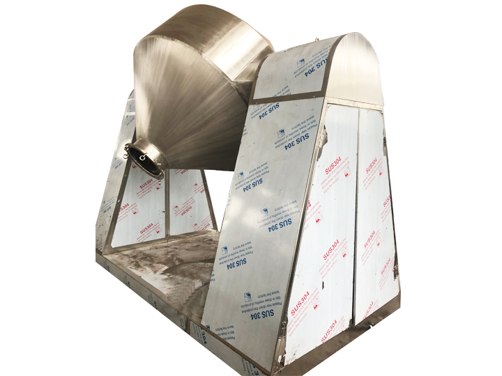 本機將粉末或粒狀物料通過真空輸送或人工加料到雙錐容器中,隨著容器的不斷旋轉,物料在容器中進行復雜的撞擊運動,達到均勻的混合。