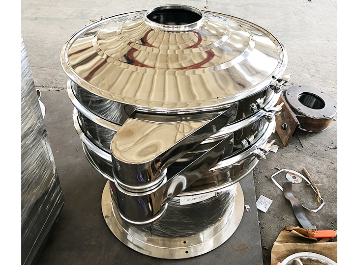 本機由料斗、振蕩室、聯軸器、電機組成。振蕩室內有偏心輪、橡膠軟件、主軸、軸承等組成??烧{節的偏心重錘經馬達驅動傳達到主軸中心線,在不平衡的狀態下產生離心力,使物料強度改變,在篩內形成軌道旋渦。重錘調節器的振幅大小可根據不同物料和篩網進行調節。