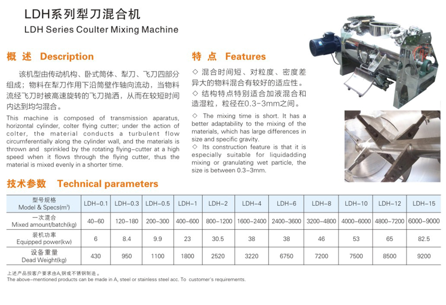 犁刀式混合機廣泛用于干粉砂漿、化工、農(nóng)藥、洗滌劑、顏料食品、味精、奶粉、食鹽、飼料、化學(xué)品、陶瓷、塑料、橡膠添加劑等粉料的干燥與混合。